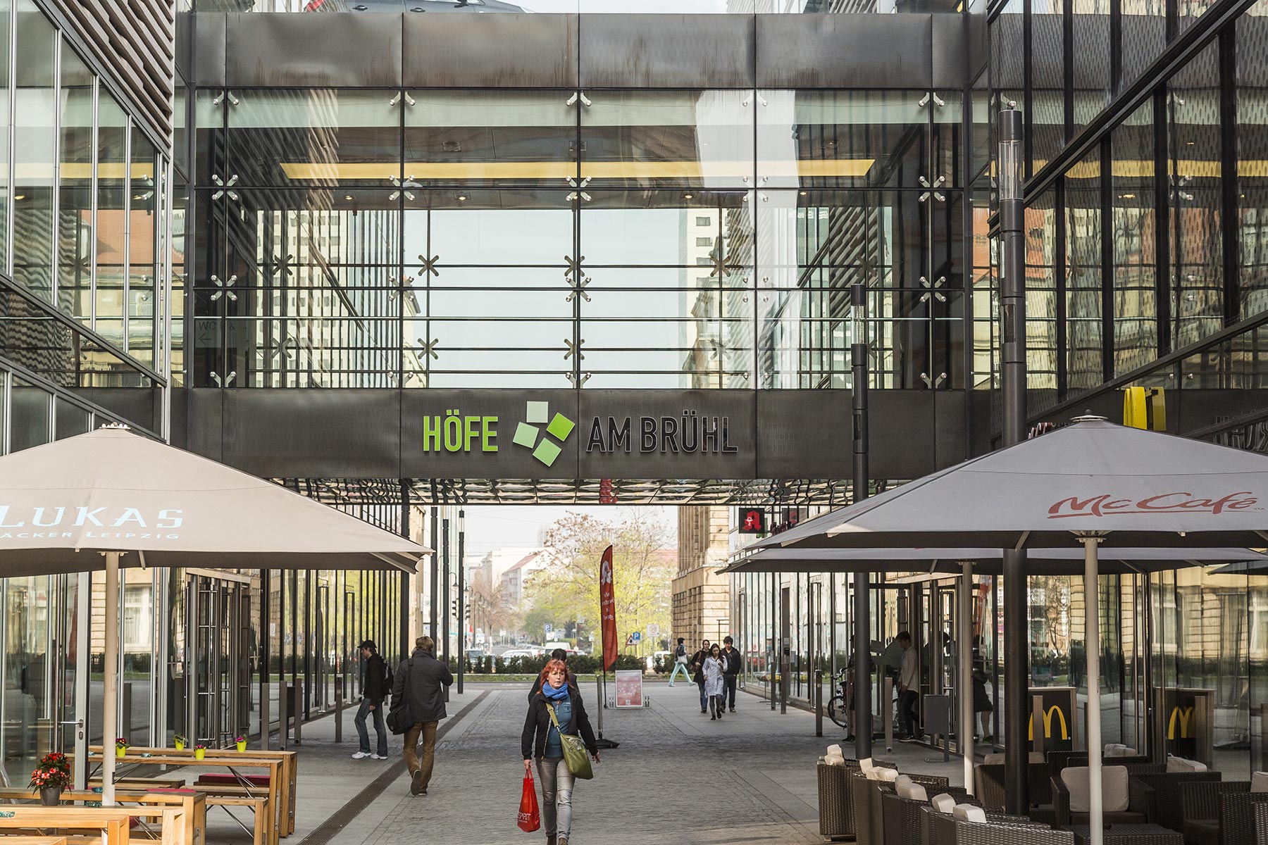 Höfe am Brühl is a shopping center in the heart of Leipzig that boasts 130 shops on three levels, a wide variety of eateries and 820 parking spaces. The Höfe, or “courtyard,” was built on historic Brühl Street, where the famous composer, W. Richard Wagner, was born.